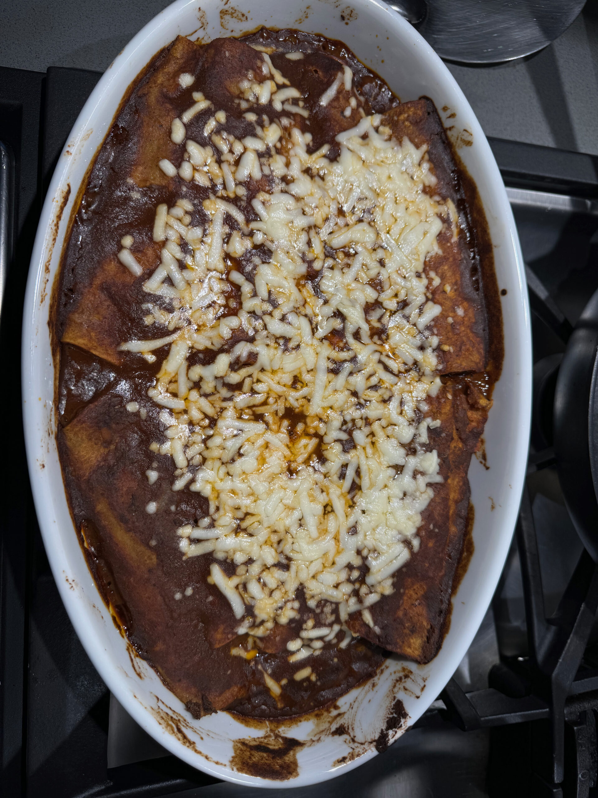 This is a recipe that started from enchiladas made by our friend Margie Marquez in the early 80’s. You can use the oil from frying the tortillas to make french fries too, if you like …
