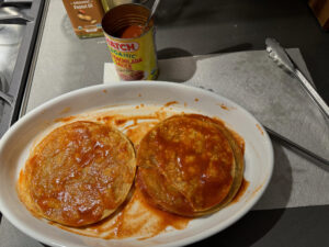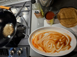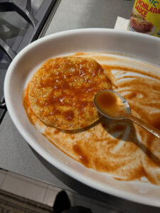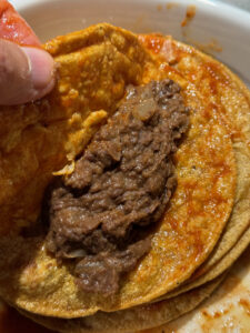 - Set up your station so you can fry and apply the sauce to the tortillas pretty quickly.
