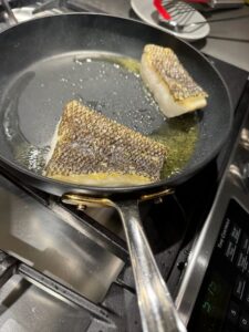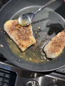 - The fish will continue cooking from the bottom. Time to add the Zatar.