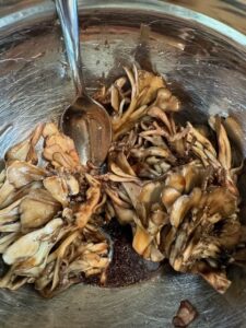 - Stir the mushrooms in the marinade and let soak for at least 10 minutes.